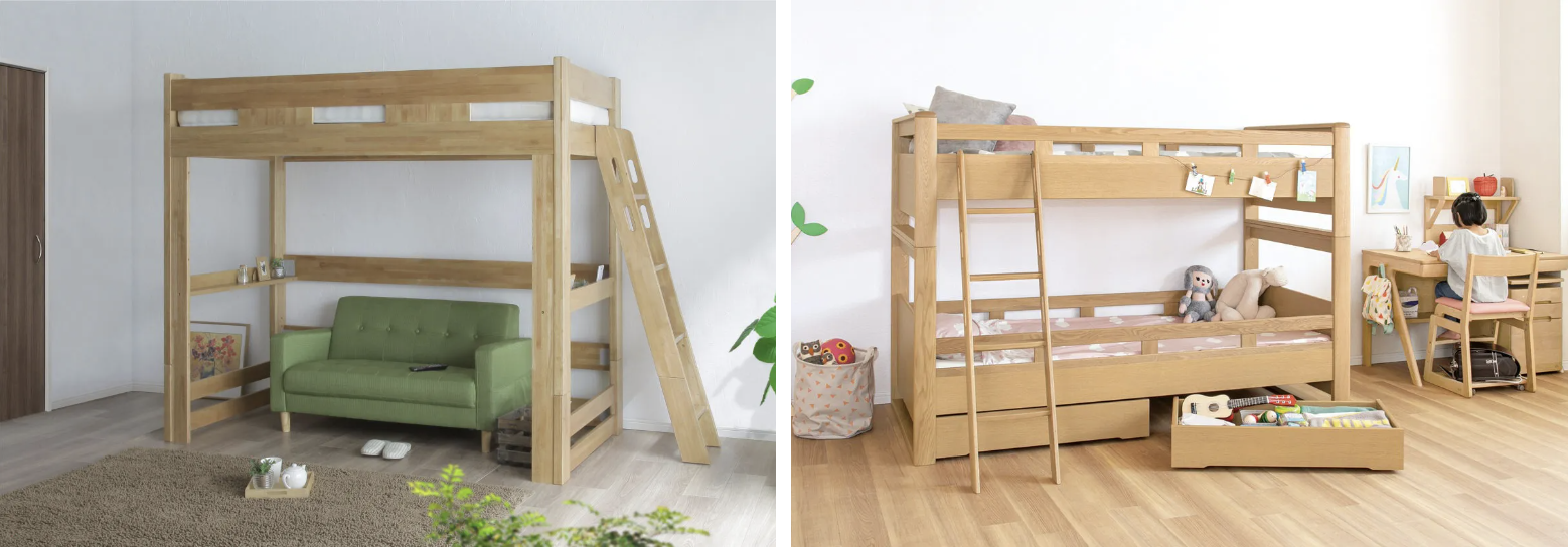 マルトク家具さんは、ソファやダイニングテーブルなども取り扱っていますが、特に2段ベッド・ベッド関係の品揃えが豊富。