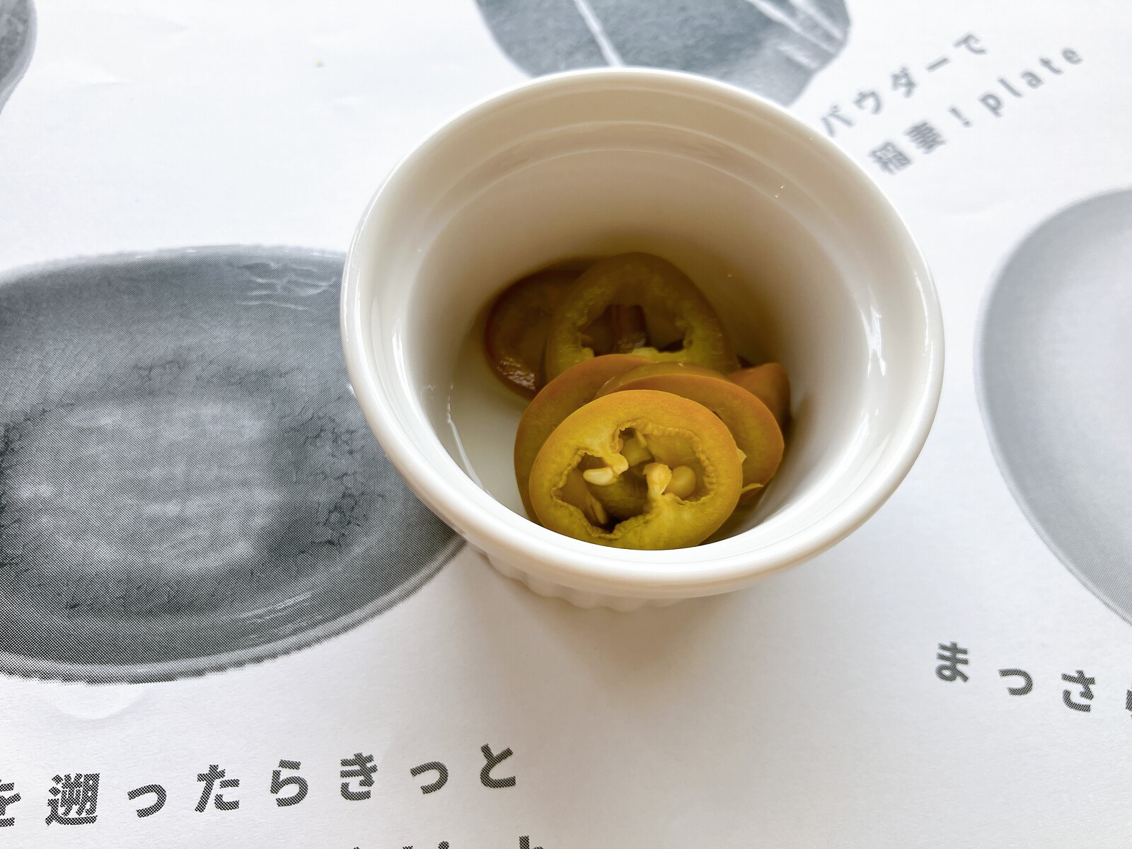 めちゃくちゃ辛いですと添えられた多分唐辛子。