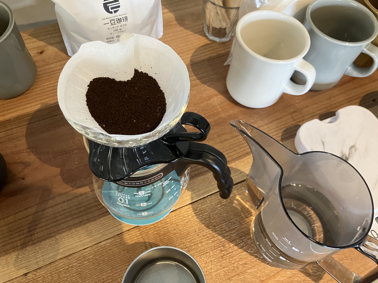 食後に、交野の一豆珈琲さんプレゼンツの、ハンドドリップ体験を。