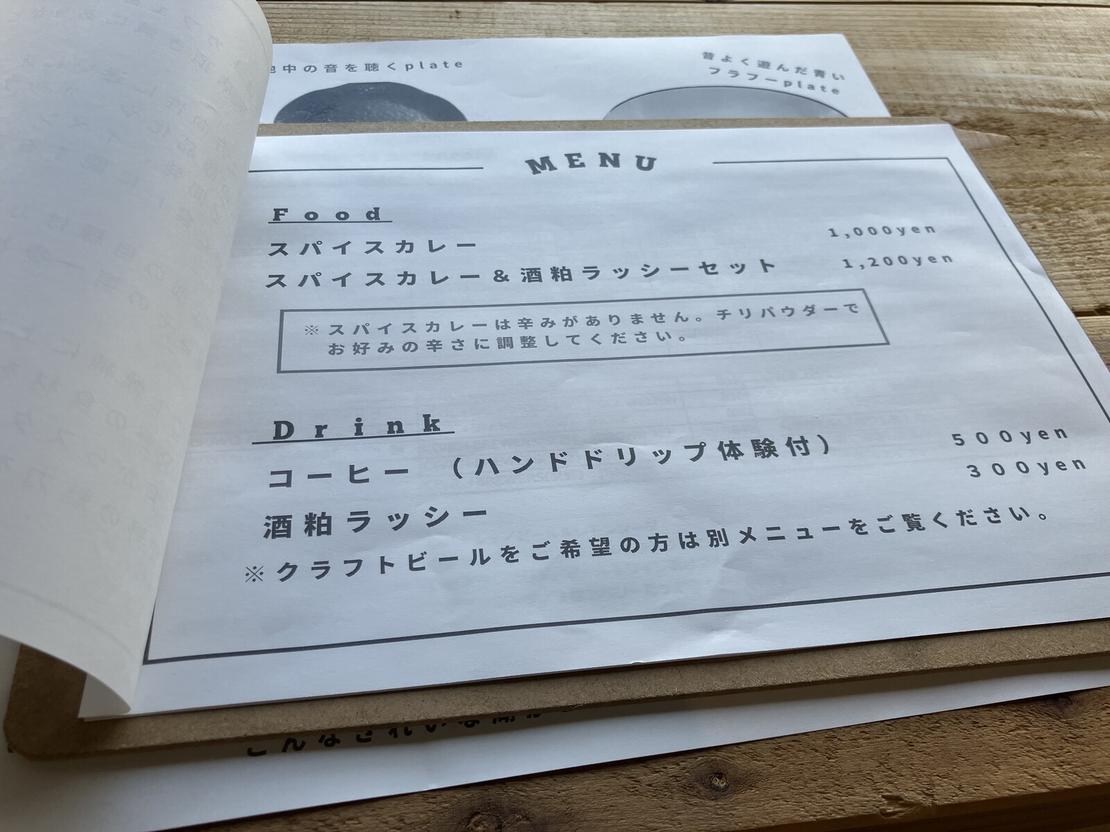 スパイスカレー&酒粕ラッシーセットと、スパイスカレーと、コーヒーのハンドドリップ体験をお願いしました。