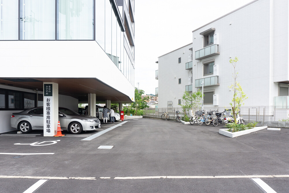 駐車場の看板は7月上旬の黒から変更されて赤に。