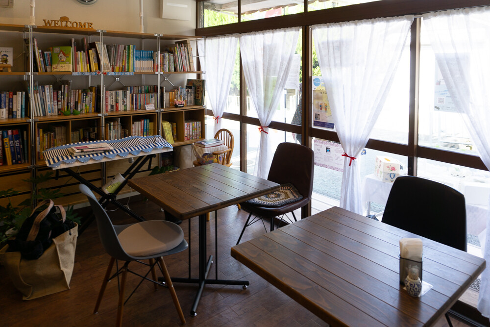 上の写真奥は一部の本を買うことができる本棚。