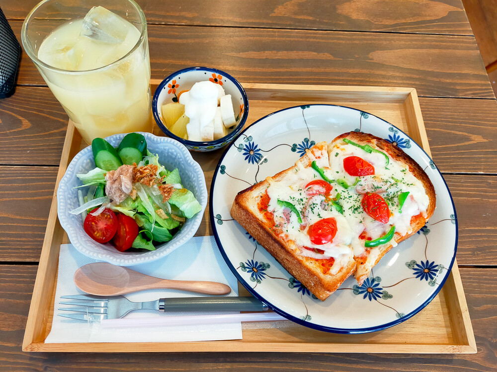河内森駅近くの「bluegrass」で『ピザトーストセット』を食べてきた。クラフトshopのモーニング!