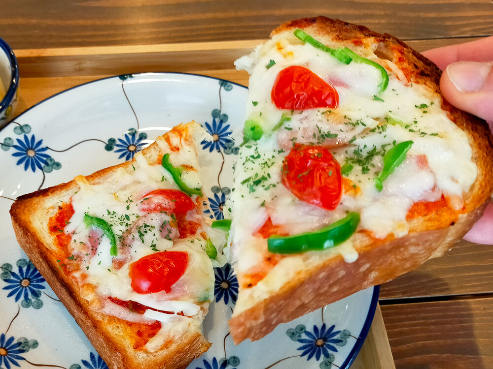 注文した「ピザトーストセット」(税込み500円)がこちら。