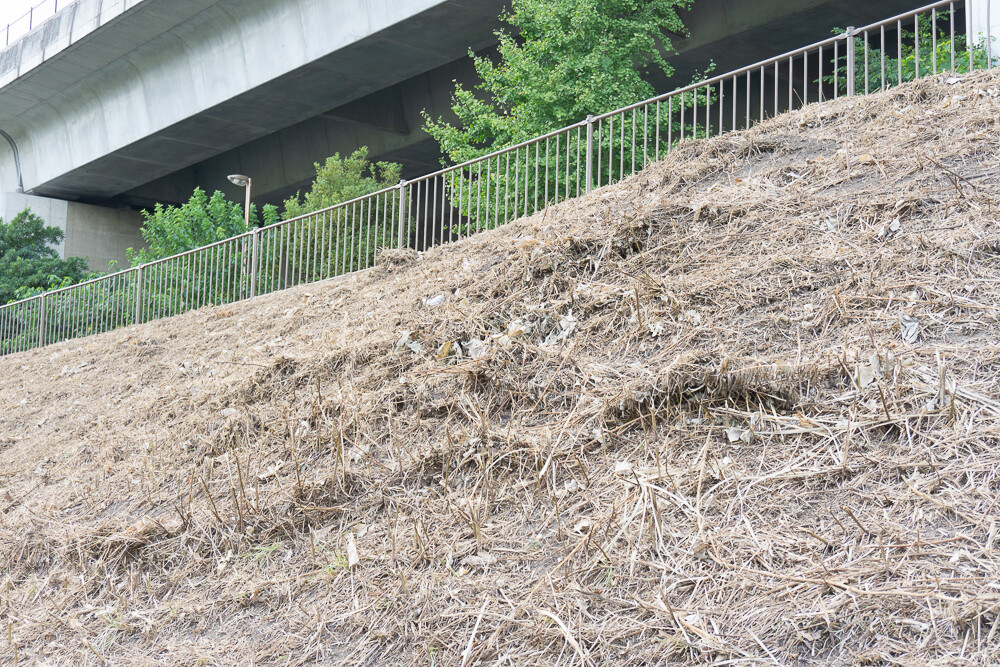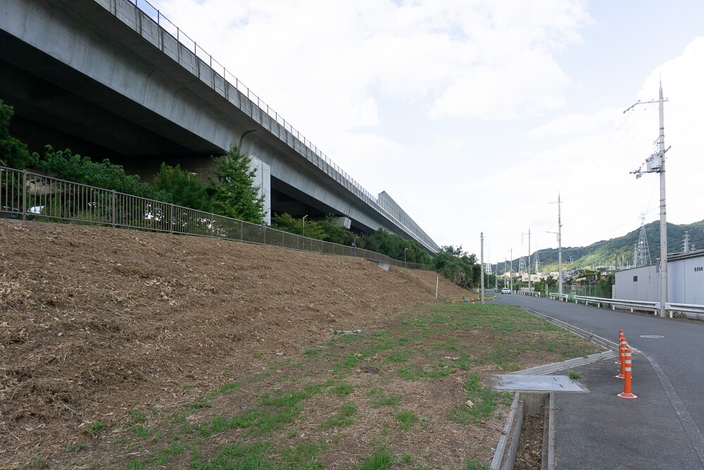 青山の第二京阪道路の斜面が草刈りされてスッキリしてる