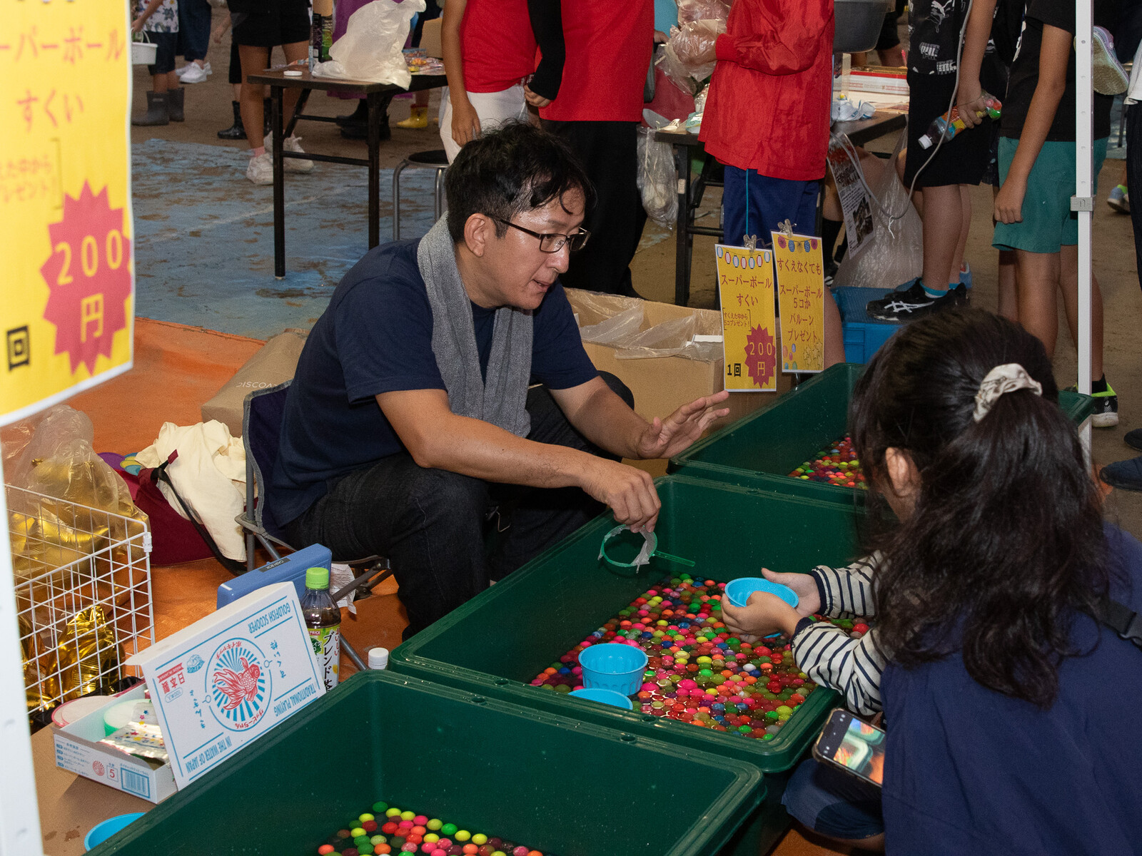 こども店は、たこせんやたこ焼き、飲み物、一円玉落としなど