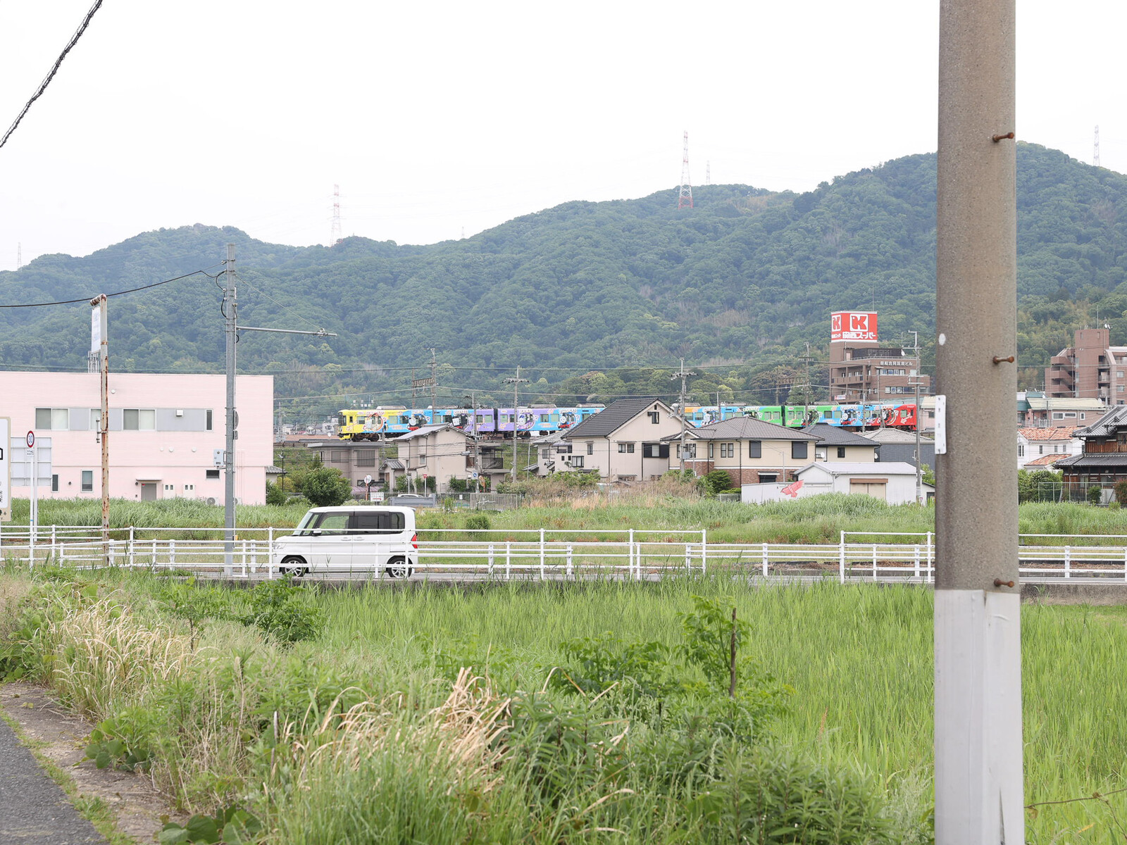 この交差点の先で、山の方に目を向けるとトーマス号が走り抜けていました。