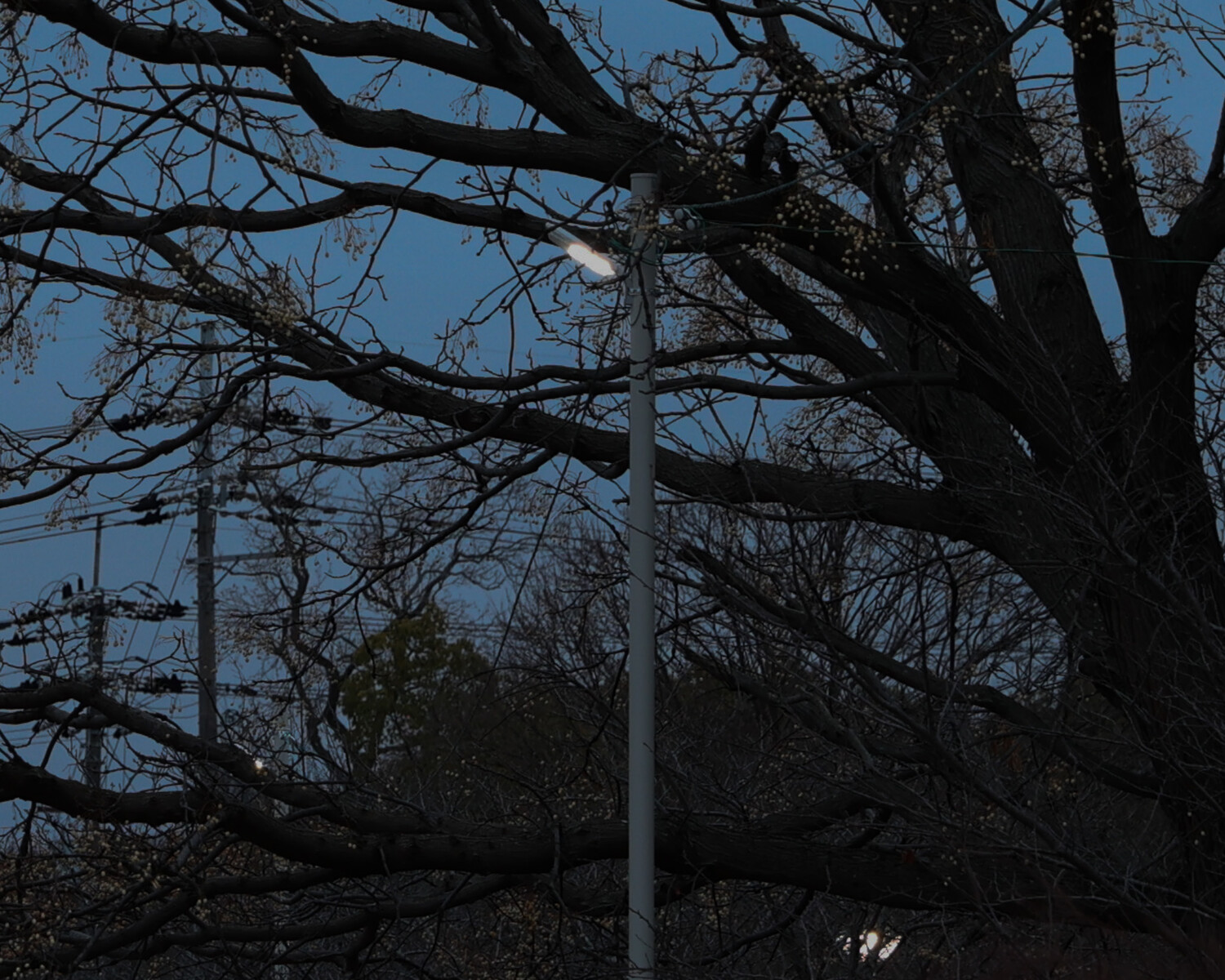 街灯が一定間隔で並んでいるのが見えています。