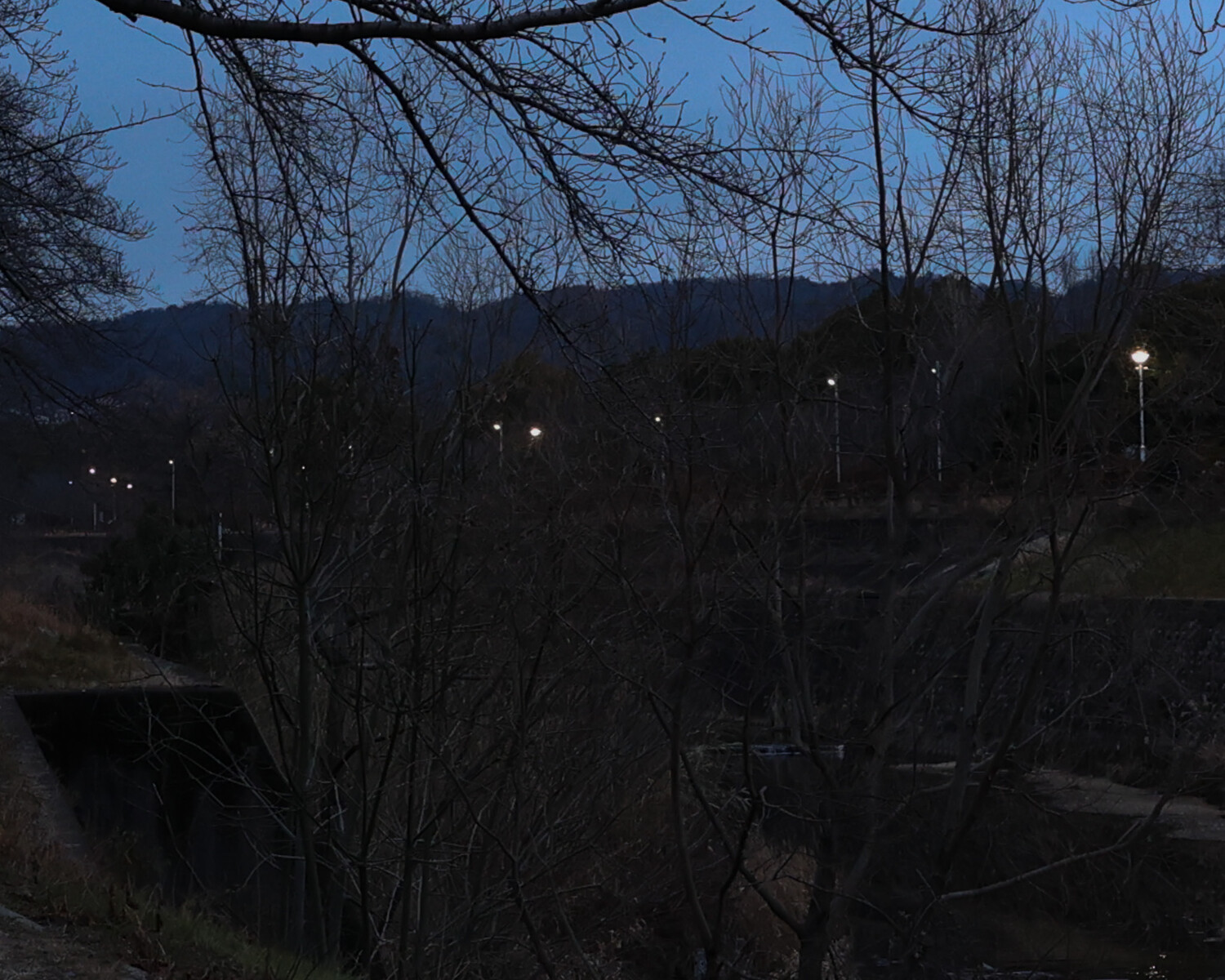 この河川敷に街灯が設置されていました。