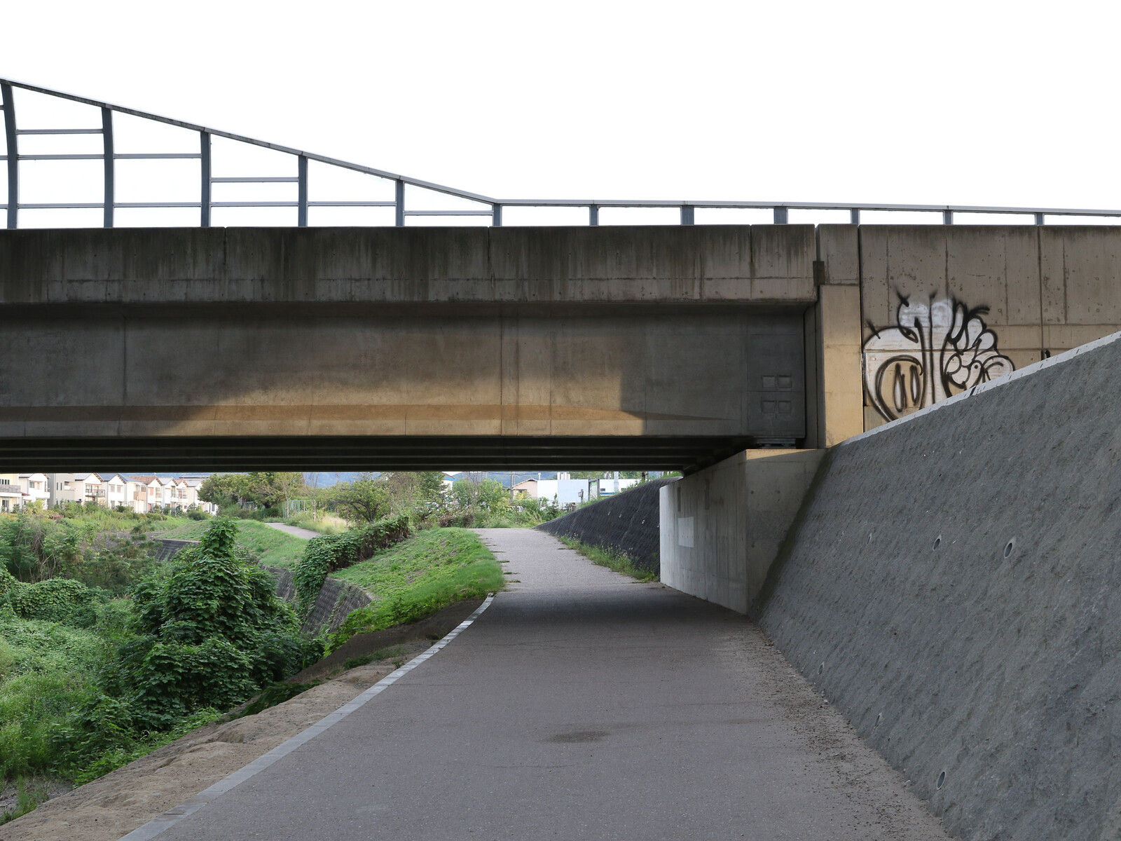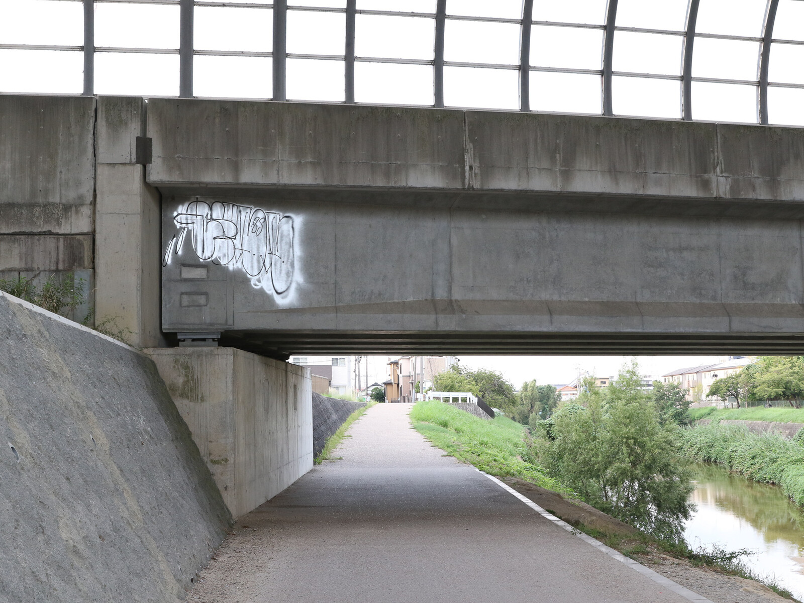 ここを上流に向かって歩いていくと、高架下を通ることになります。
