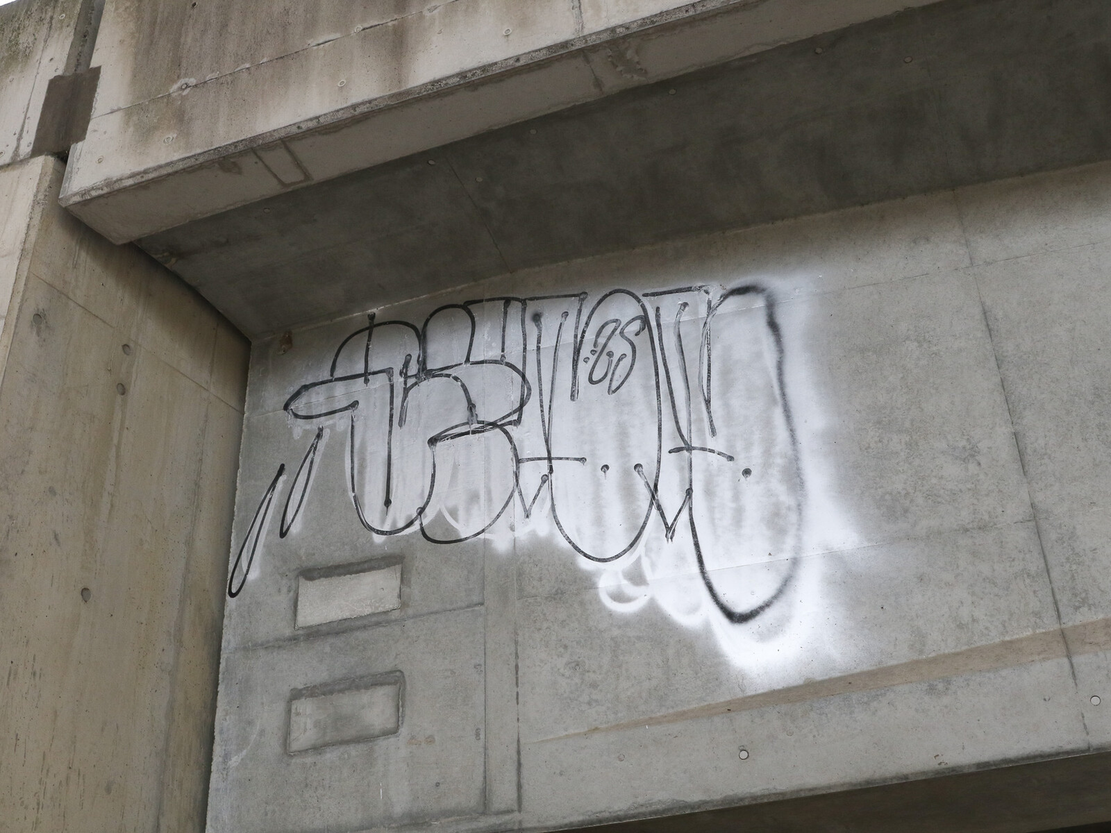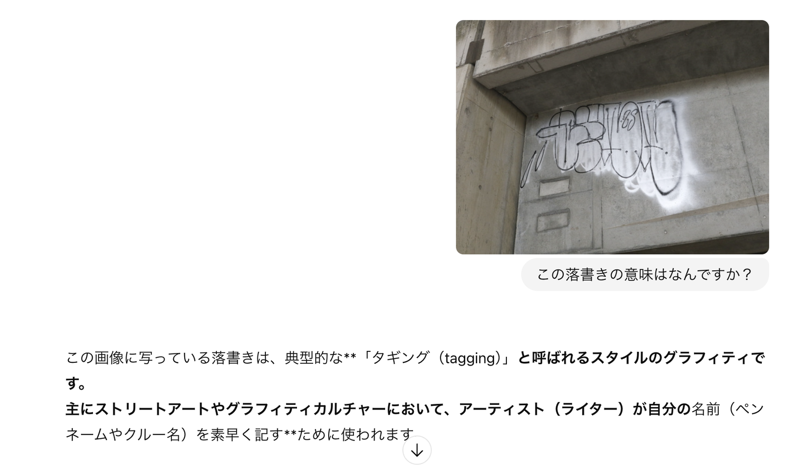 ・この画像に写っている落書きは、「タギング(tagging)」と呼ばれるスタイルのグラフィティ