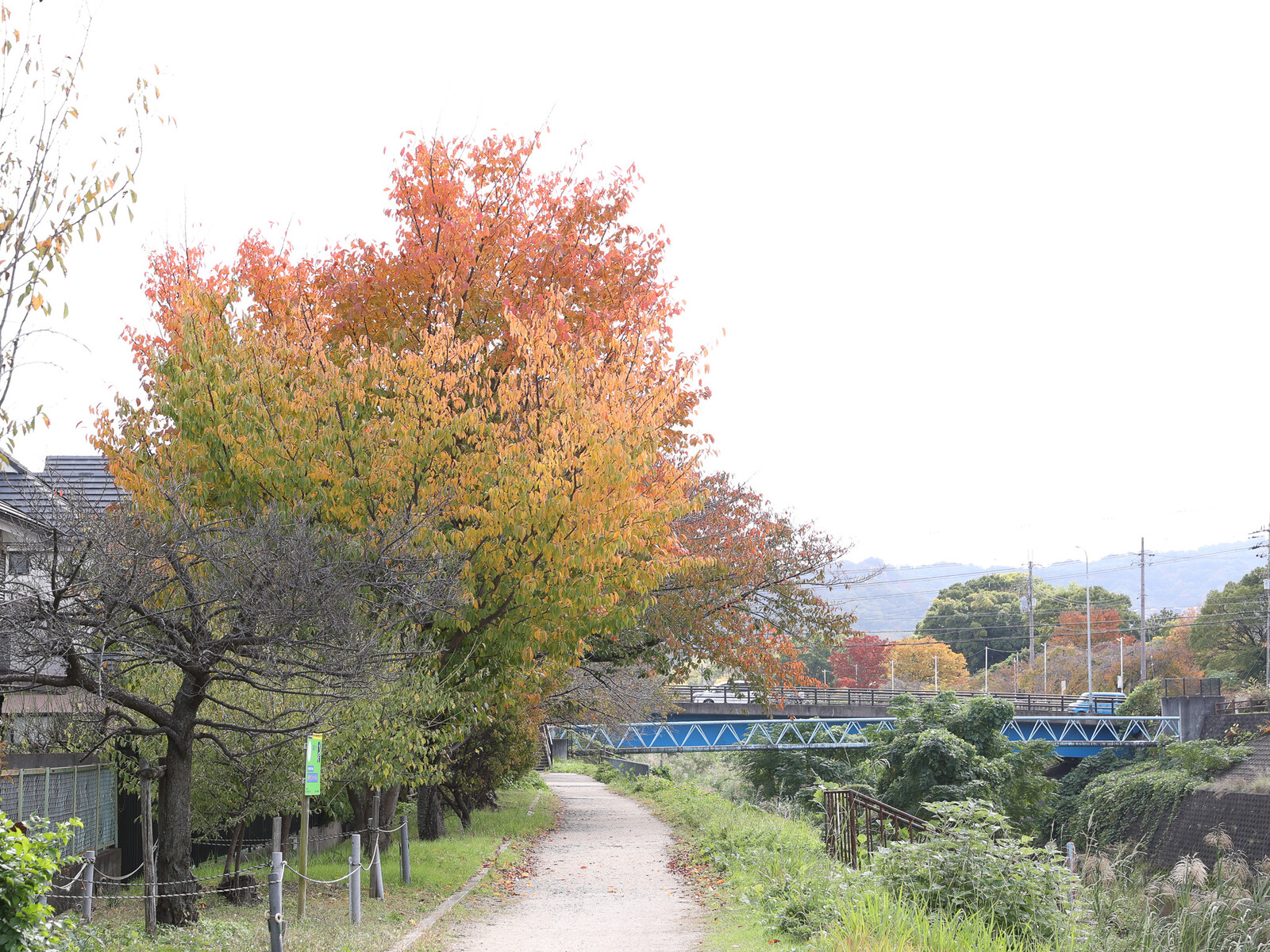学研都市線の短い鉄橋の上や、横から眺める、木々樹木の紅葉は、本当に綺麗で美しいです。