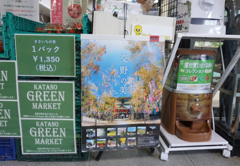 場所は、現在、カタノグリーンマーケットが開催中の星の里いわふねのロビー前。