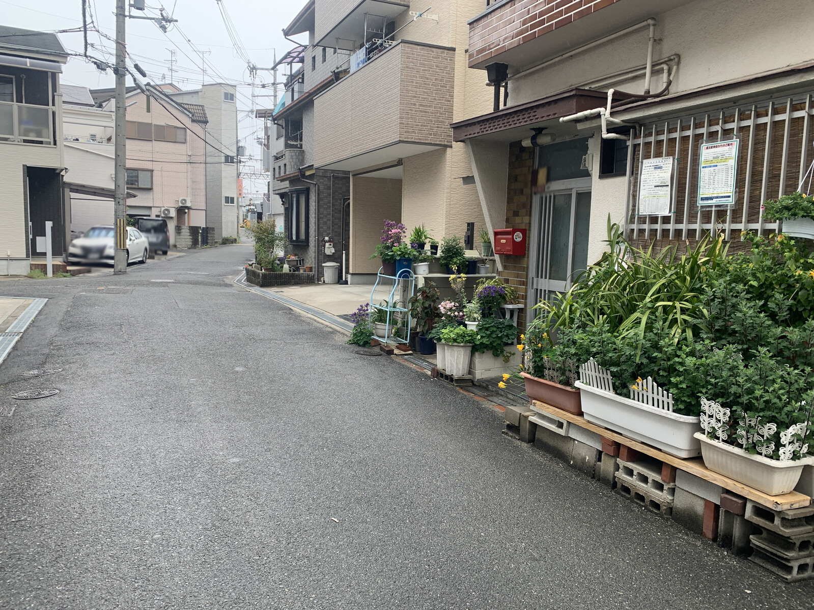 線路沿いの住宅地のなかの道をまっすぐいきますと、左手に店舗があらわれます。