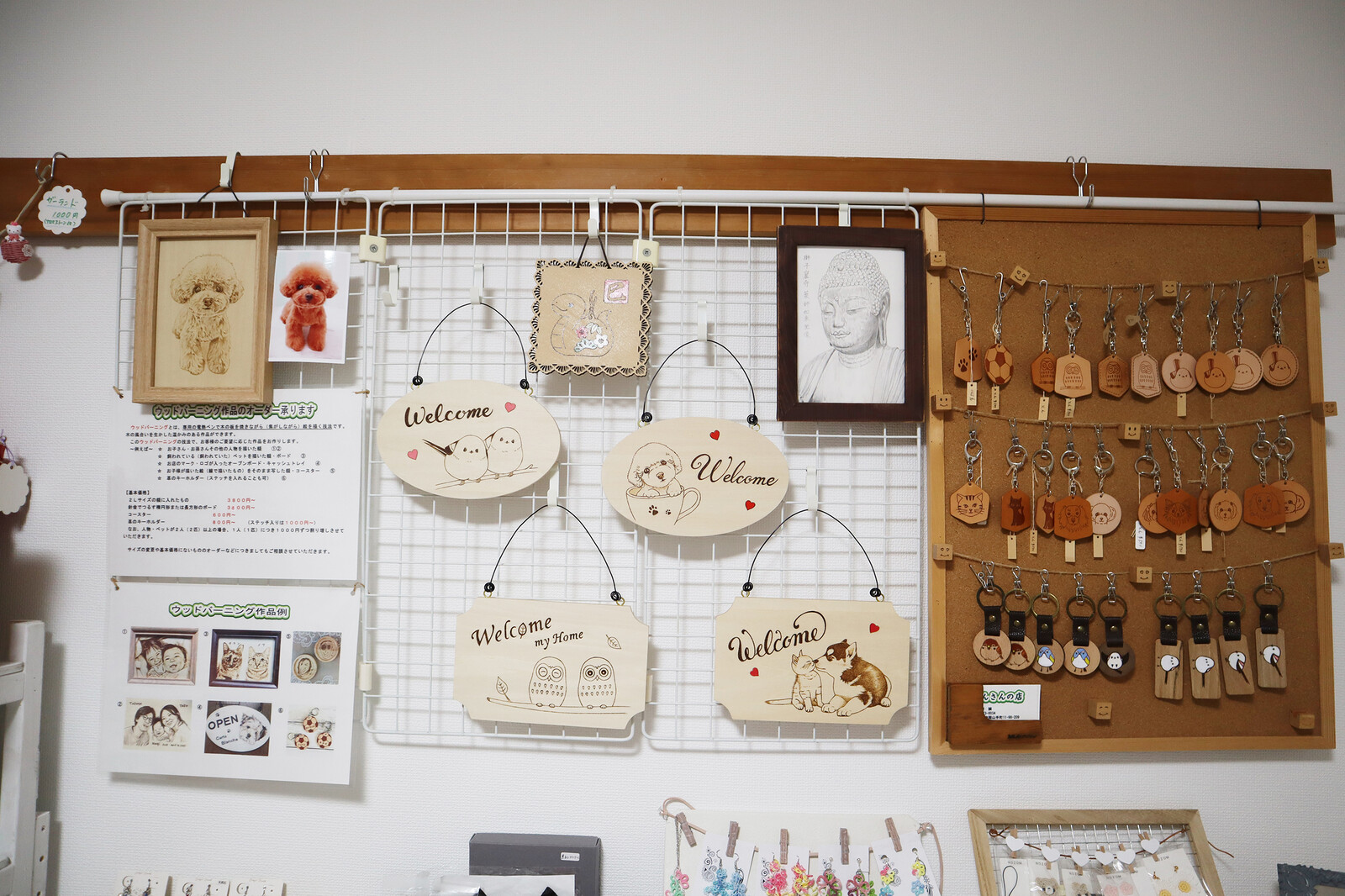こちらは、もうおひとりのウッドバーニング『とんさんの店』の作品コーナー。