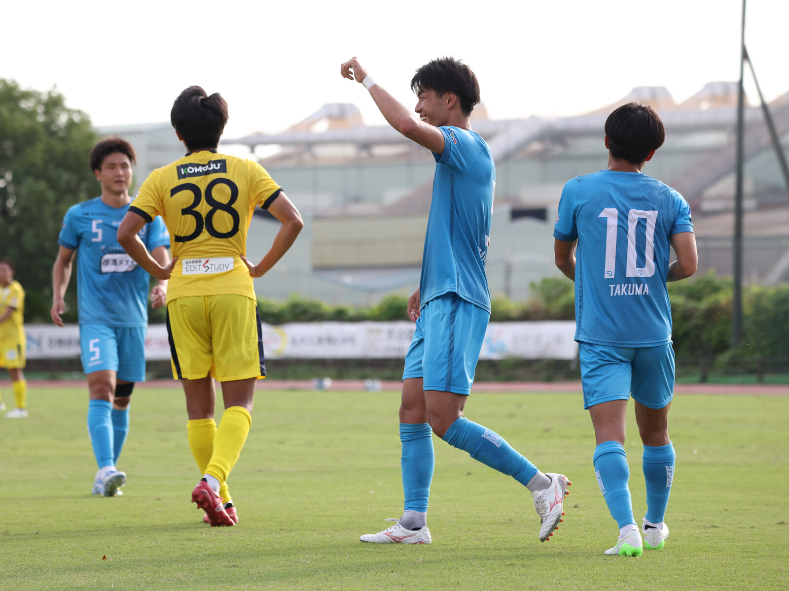 今日は、相手のプレッシャーもそんなに前から来る感じではなかったので、自分達が気持ちよく動かせたのもあって、自分が高い位置にとった分、1つ下の卓磨くんとか原ちゃんとか拓海の中入ってきたところのスペースが空いたので、そこで背後の動きでシュートまでいけてたので、先制点もそれで取れたので良かったです。