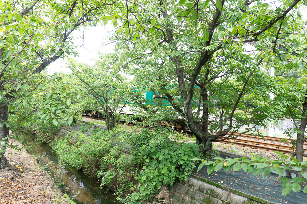 桜並木は郡津駅から線路沿いに600mほど続き、春には桜のスポットの1つとなっているところです。