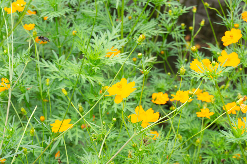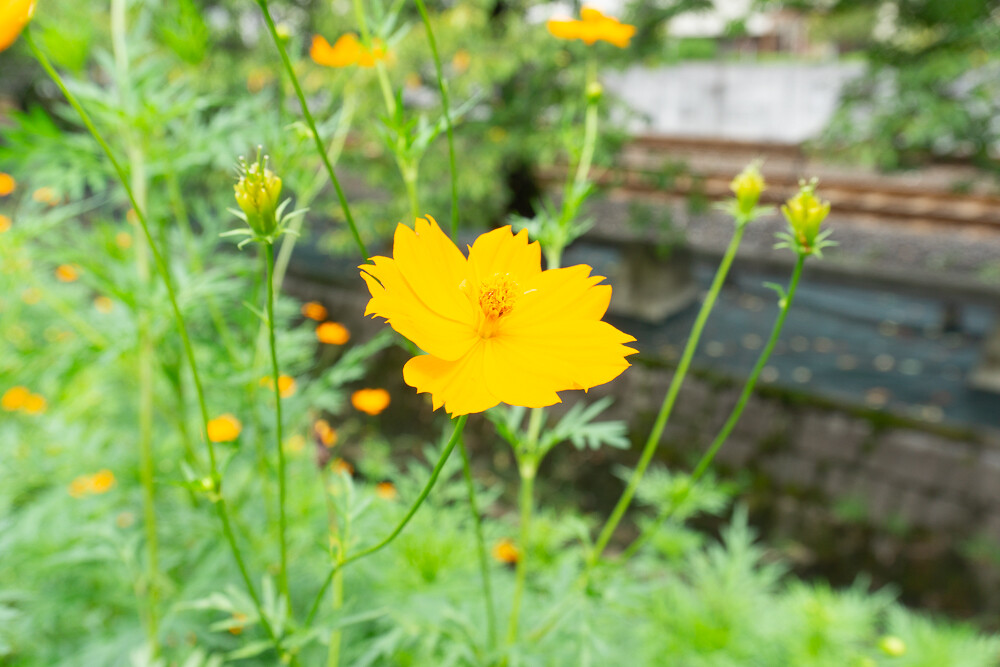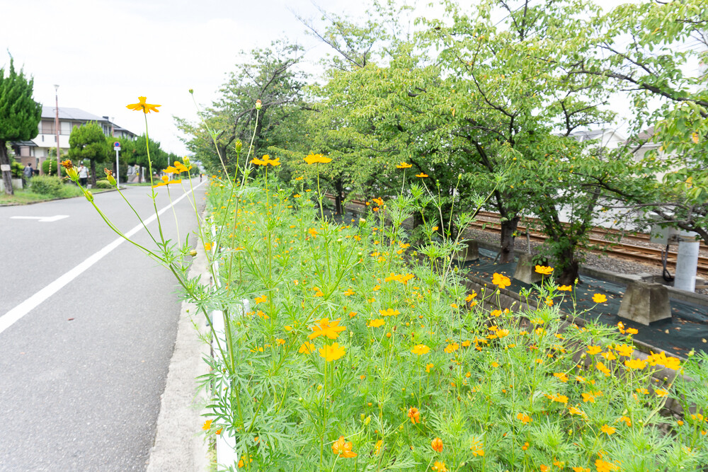 秋の兆し!? 松塚の線路沿いに咲くキバナコスモス