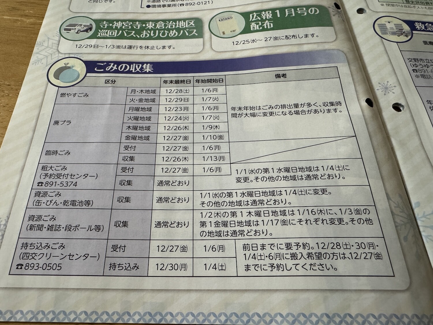 交野市広報12月号にも掲載されていましたが、交野市の年末のごみ収集についてまとめてみました。