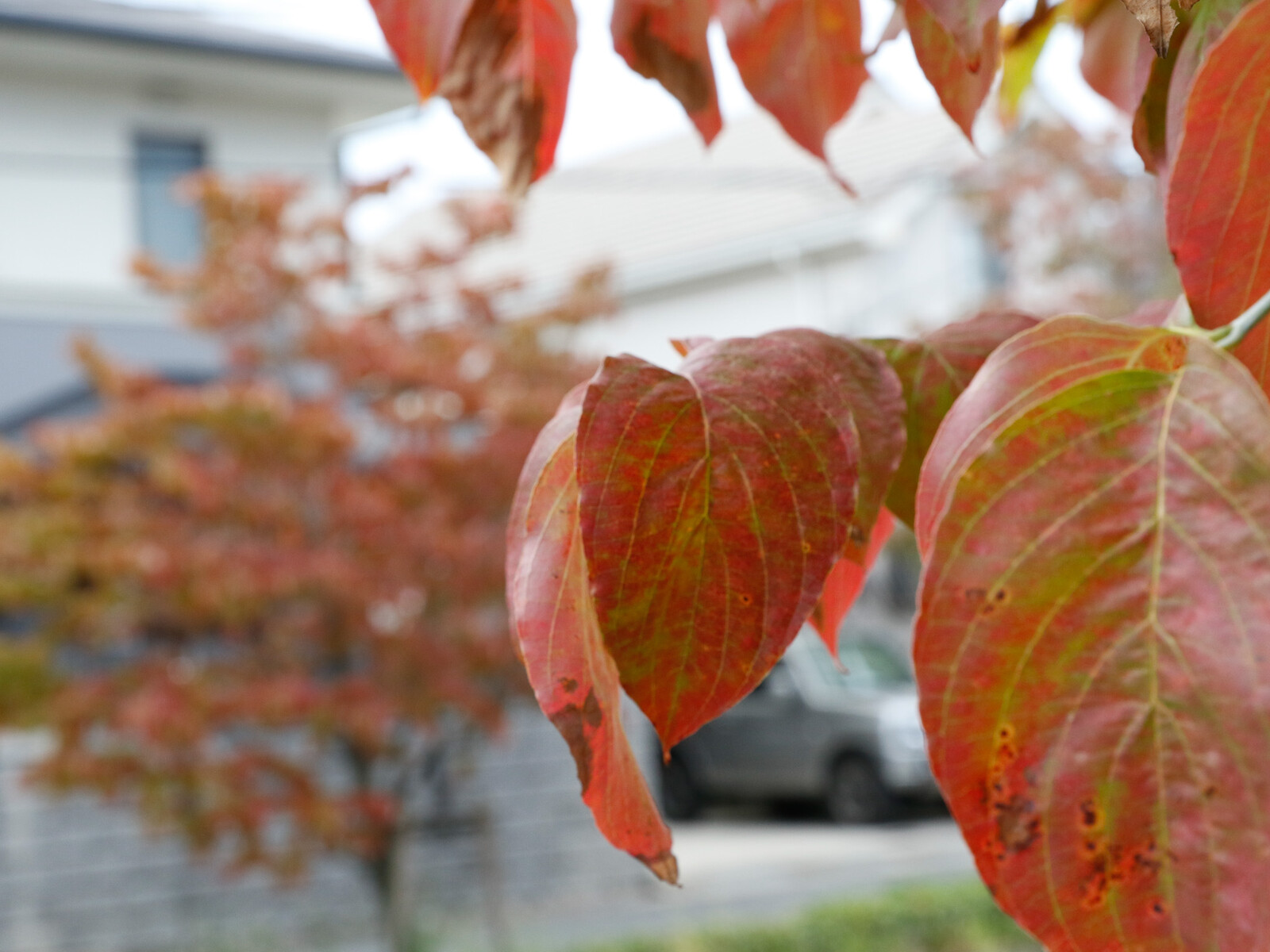 イチョウなどの他の街路樹の中では、1番に紅葉してしまうハナミズキ。