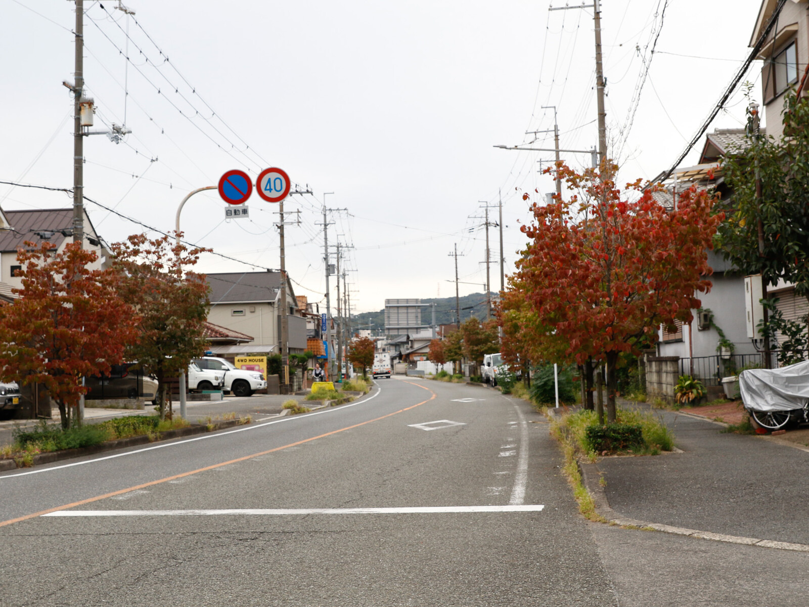 国道168号線沿い。真っ赤な実もかわいい!ハナミズキの街路樹が色づいてる!