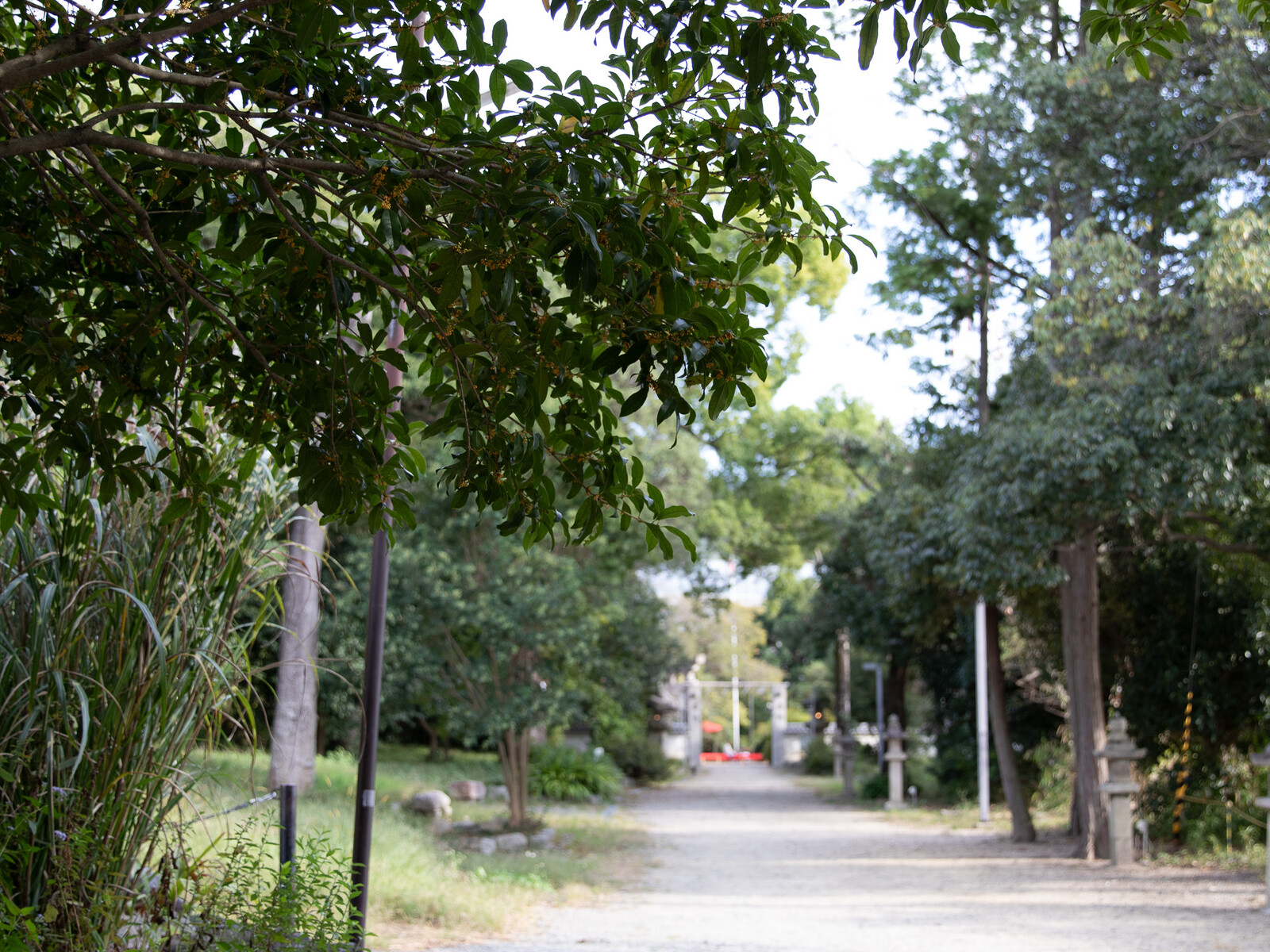 機物神社の参道で秋の始まりを実感。金木犀の香り漂う。