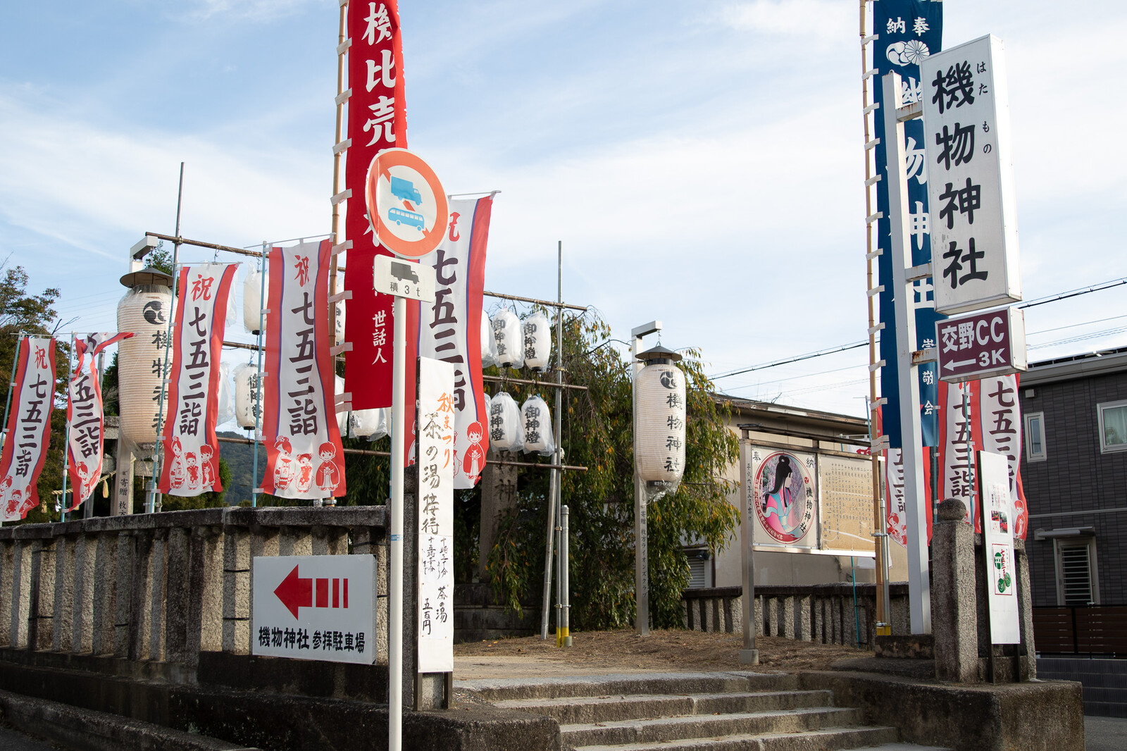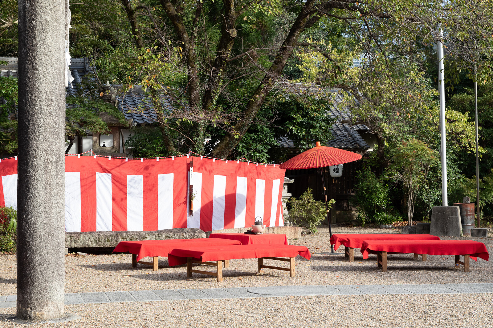 鳥居をくぐり、参道を進むとその先に朱色の緋毛氈(ひもうせん)が見えてきました。