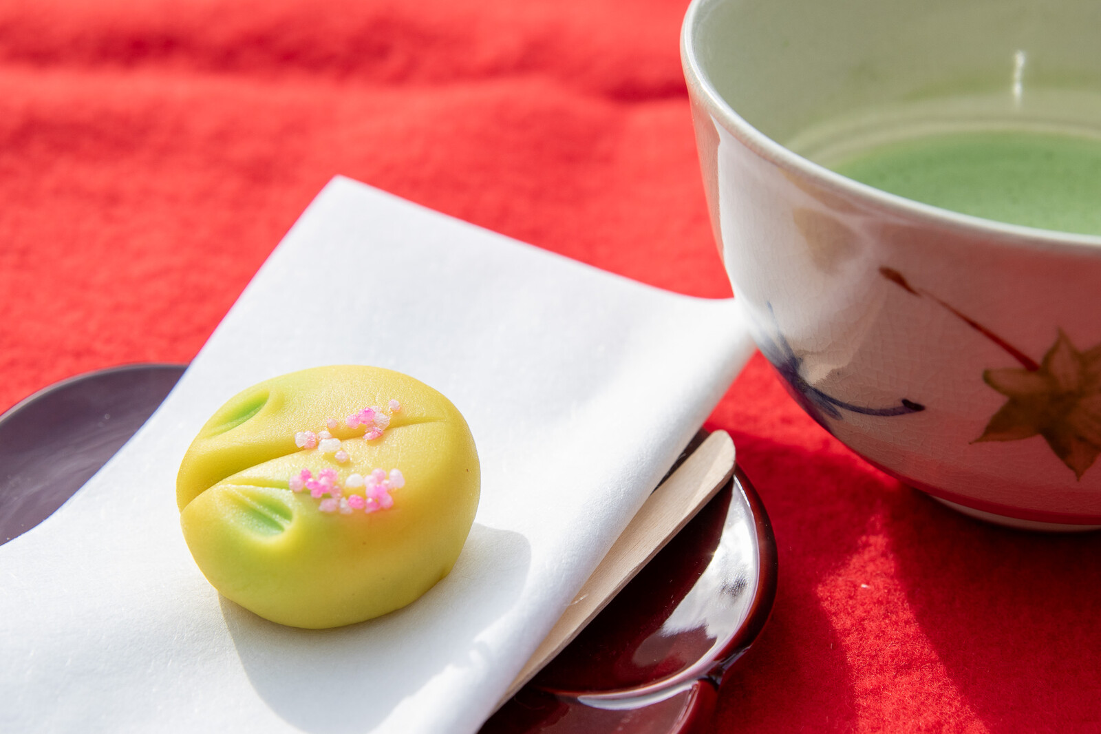 茶席を楽しんでいる間に、お抹茶とお菓子が運ばれてきました。