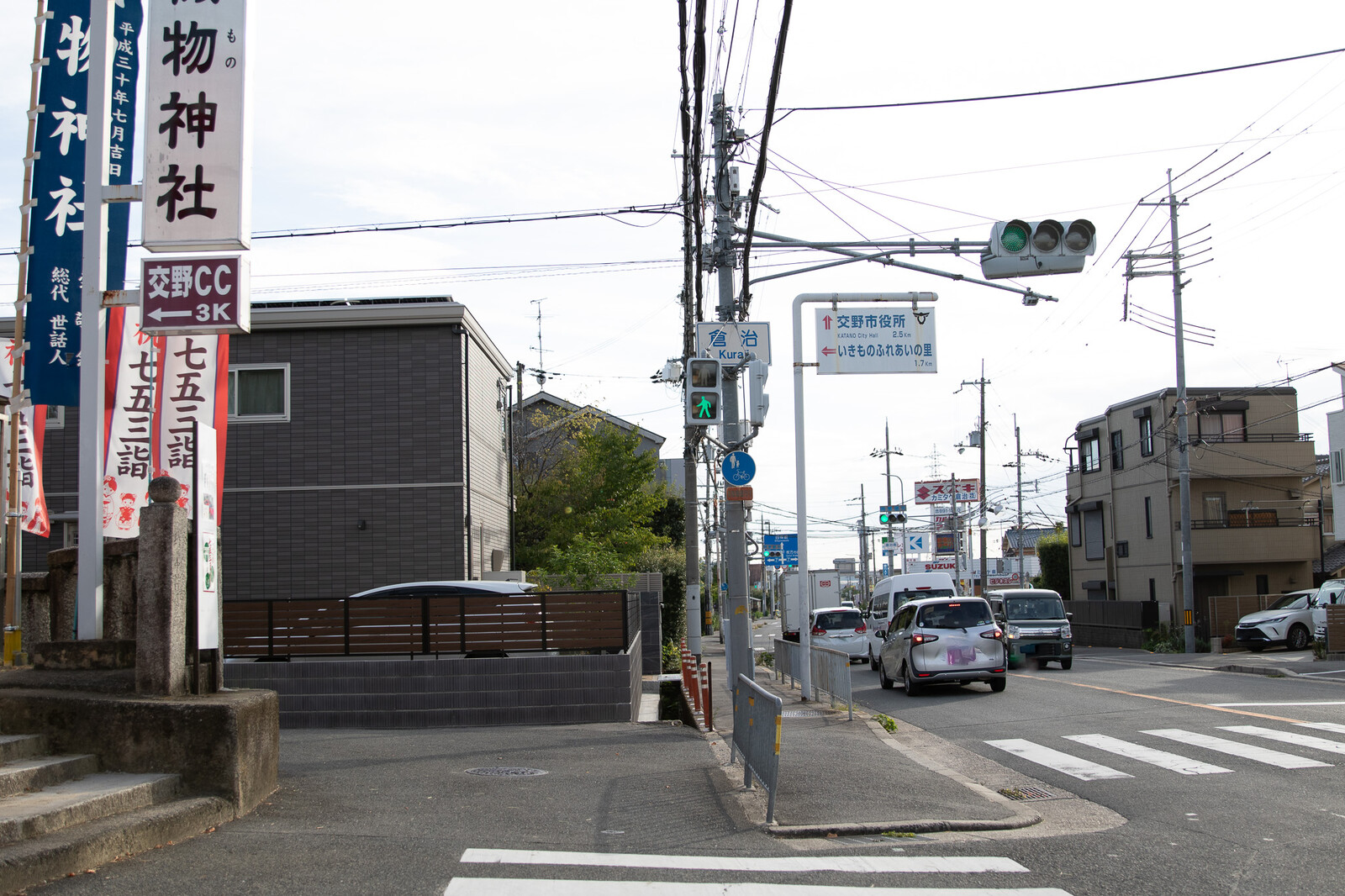 府道736号線、交野久御山線の倉治の交差点前になり、この方向に進むと交野警察署に向かいます。