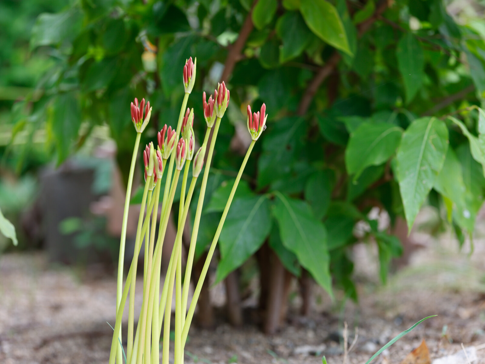 たった今花芽が上がったばかりという蕾も蕾、まだ硬い蕾の彼岸花に遭遇。