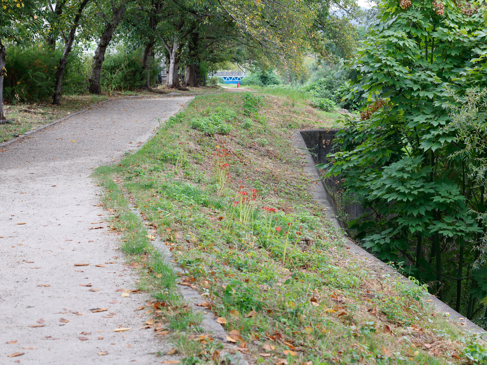 彼岸花の群生地は、滋賀や奈良に有名どころがありますが、天の川の河川敷も絨毯のように彼岸花が咲き誇る場所になれば見事でしょうね。