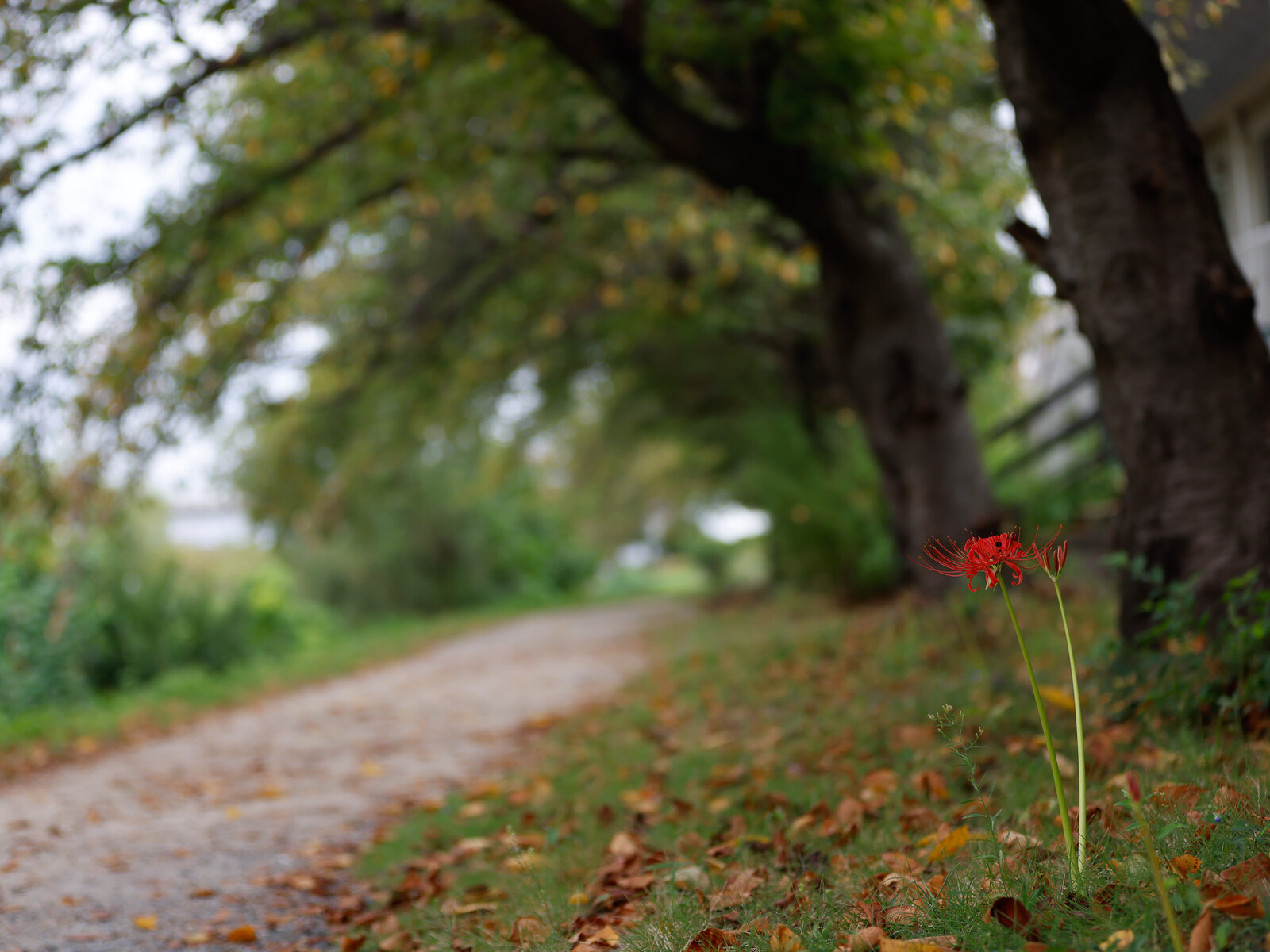 こちらは、桜の木の根元にポツンと咲いていた彼岸花。