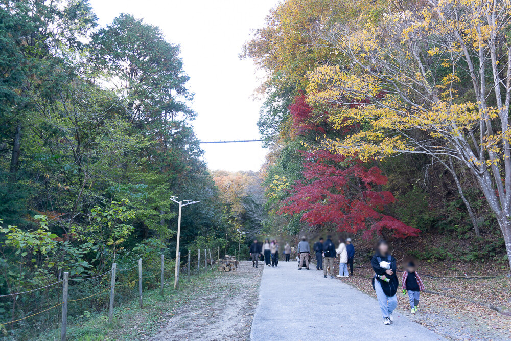 山道は紅葉と上空の吊り橋の組み合わせが良いですね。