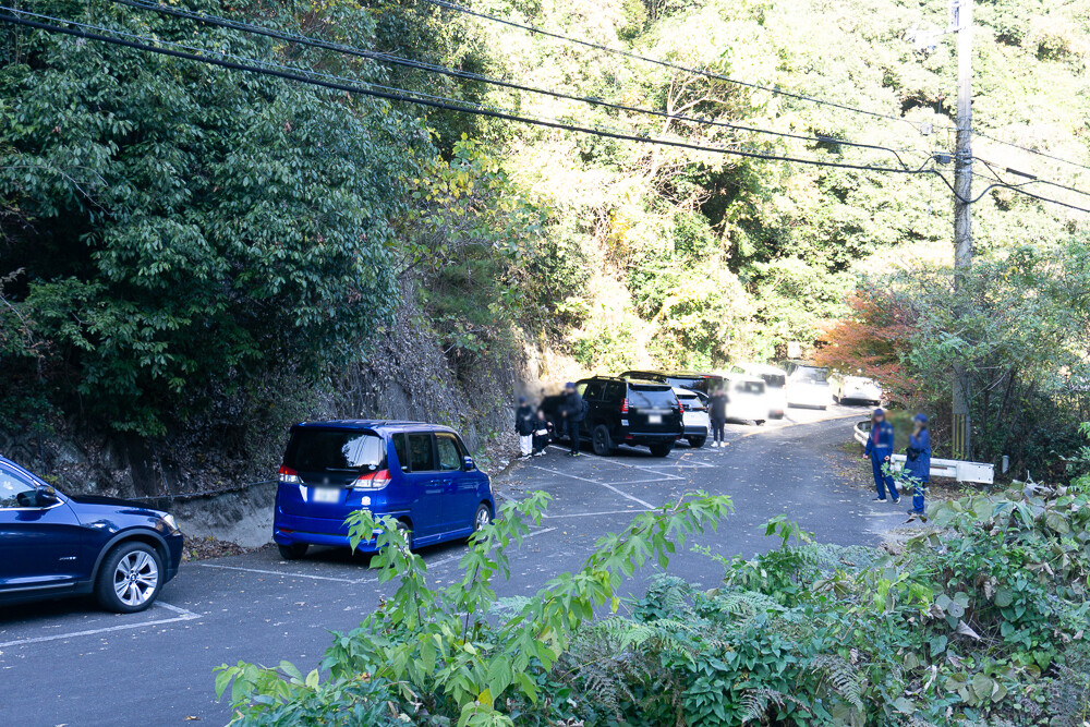 私市側にある臨時駐車場(国道168号線の旧道)は、空きが数台ぐらい。