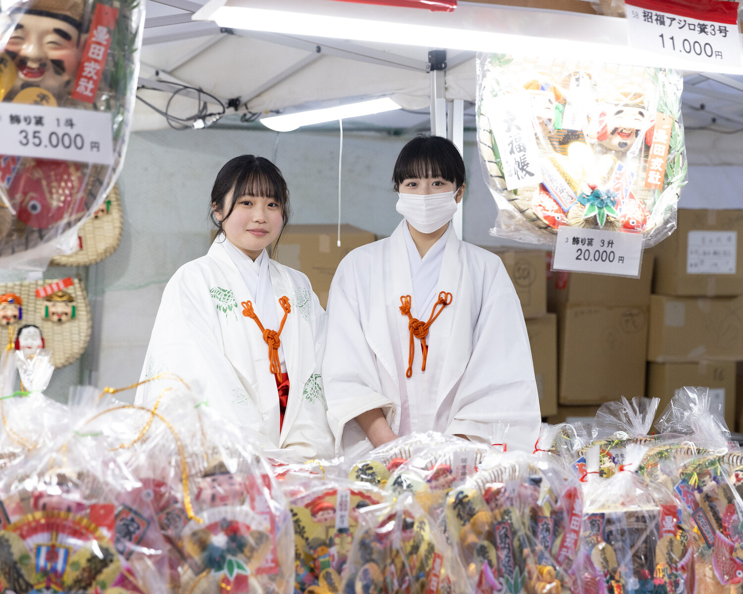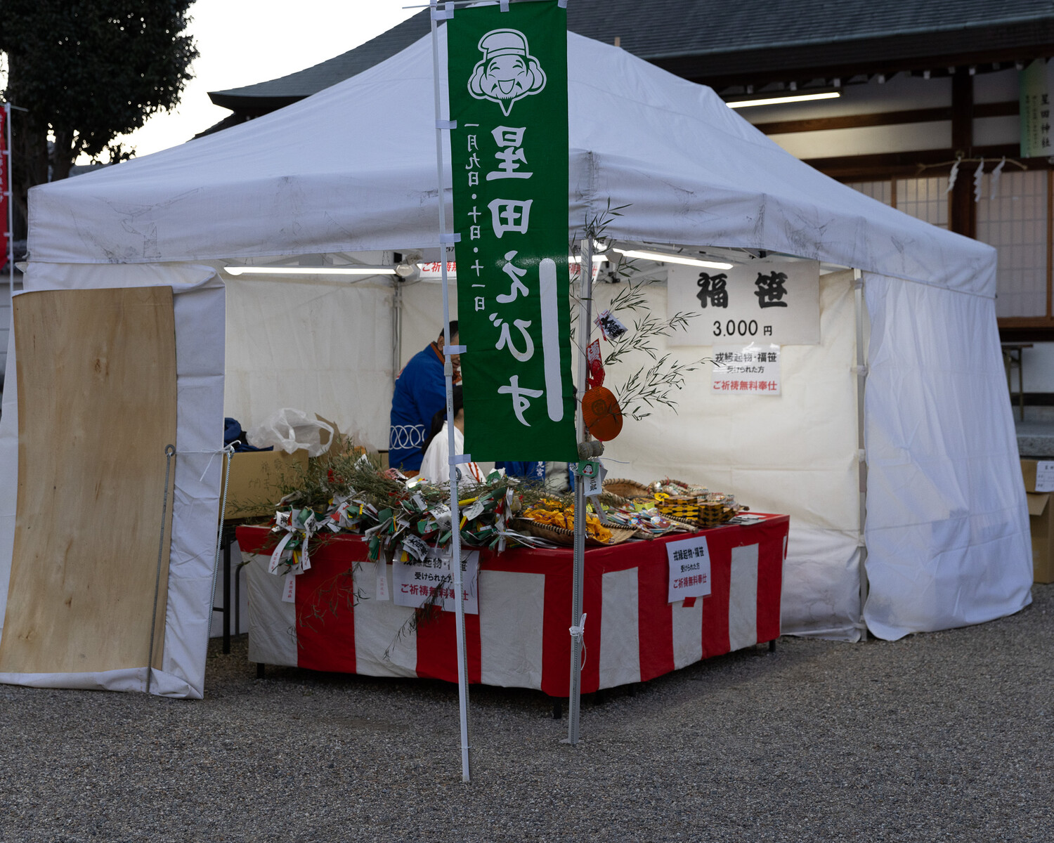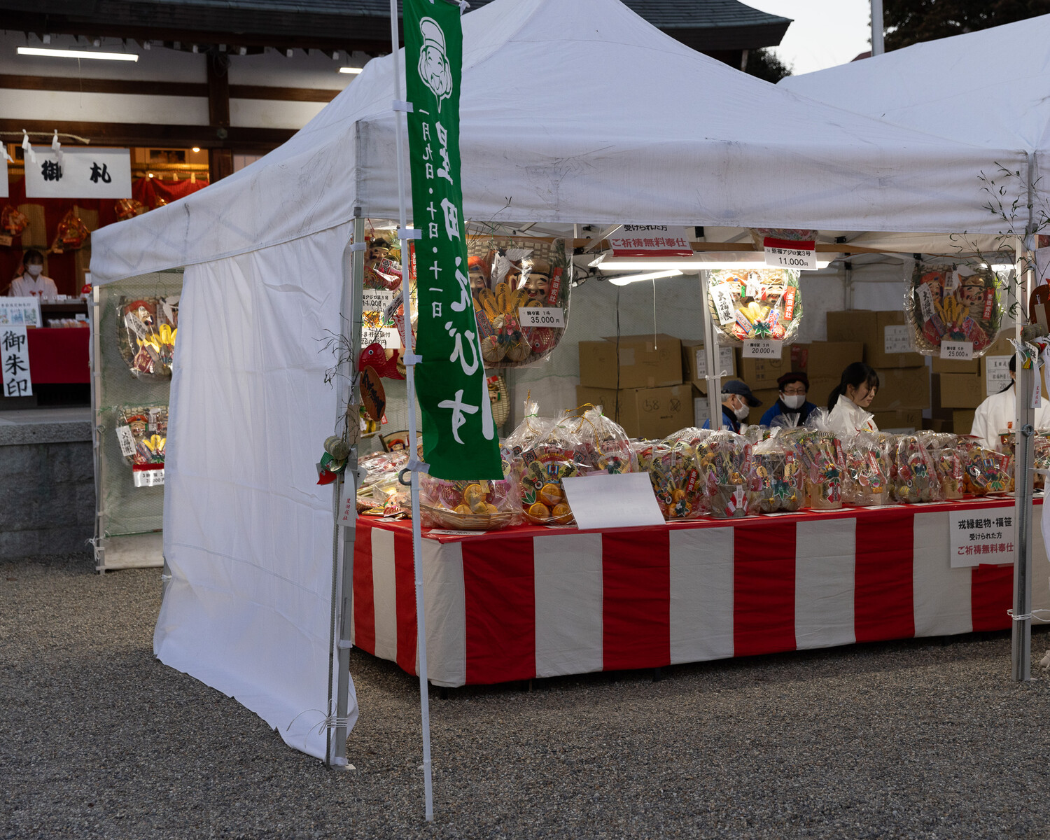 たくさんの縁起物や笹が置かれていました。