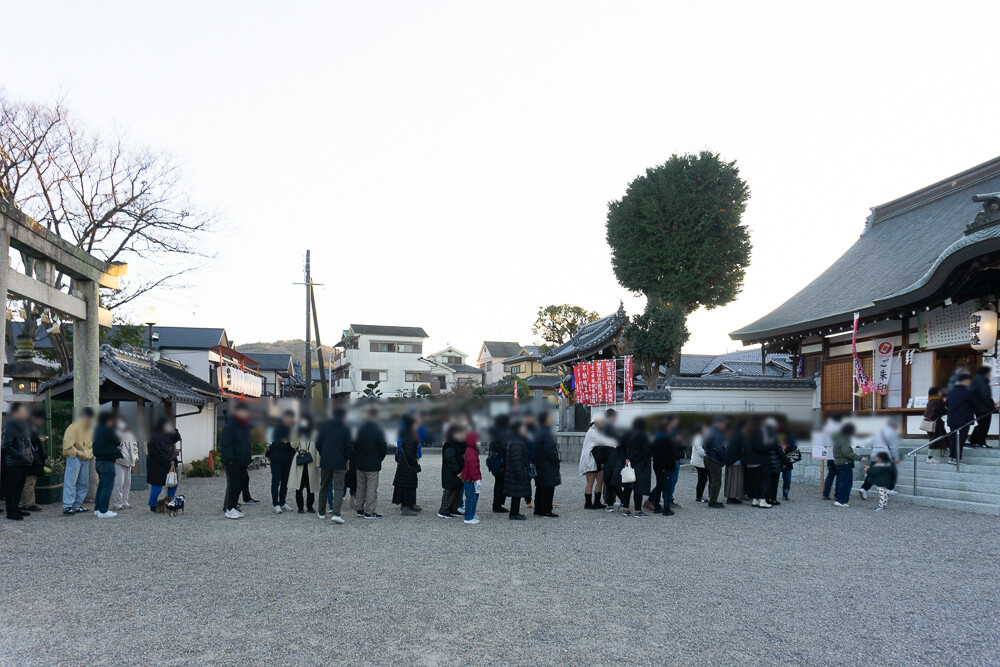 2025年元日、16時台。星田神社に初詣の長い行列ができてた