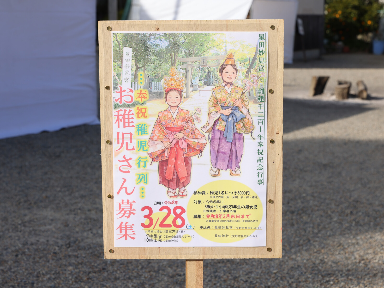 内容を見ると、星田妙見宮の創建1210年奉祝記念行事稚児行列のお稚児さん募集の看板でした。
