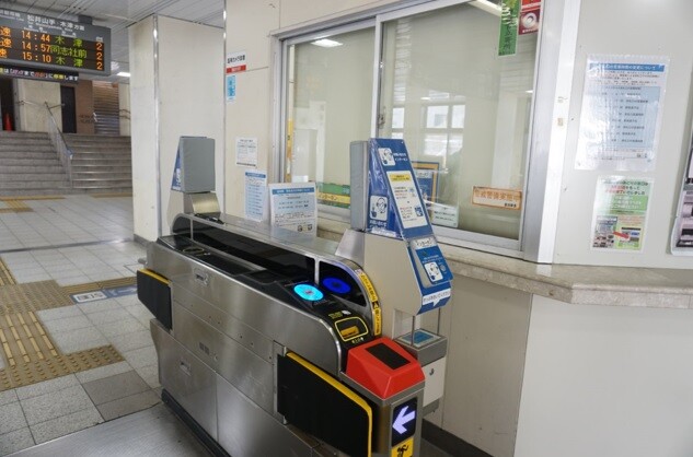 駅員が不在の時間帯は自動改札機横のインターフォンで通話可能。