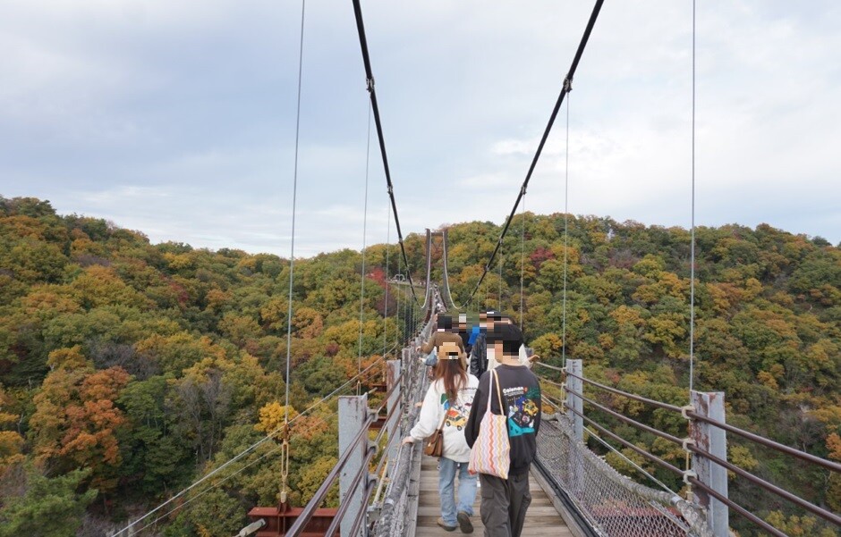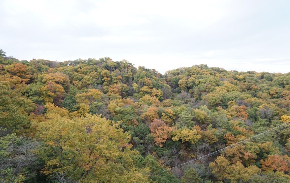 渡り始める前は「紅葉はまだかな」と思ったのですが、橋の上から色づきつつある山を見ることができました。