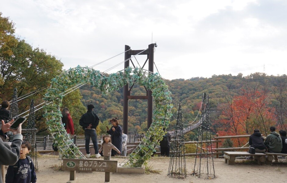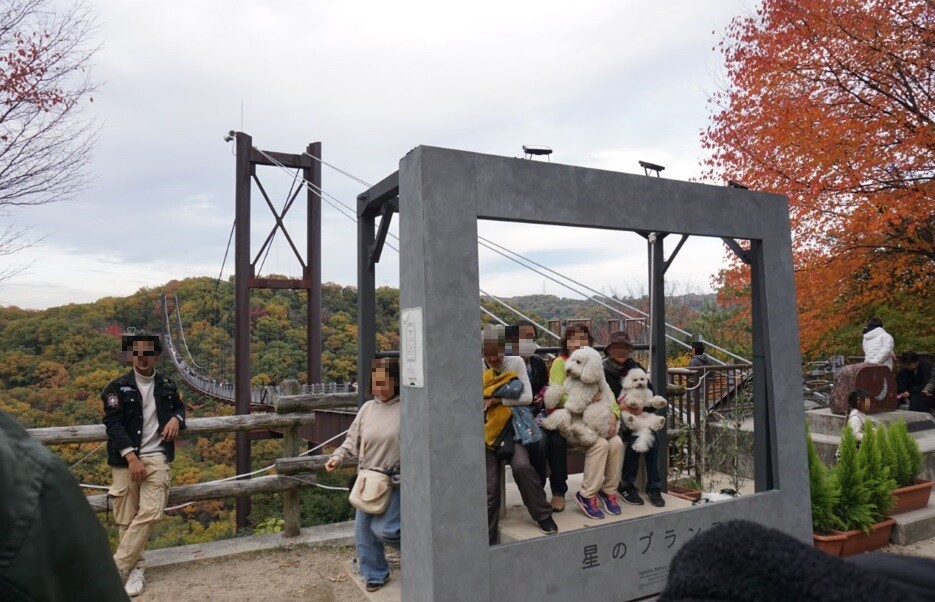 上空に見えているのが吊り橋「星のブランコ」です。最大地上高50mは伊達ではありません。