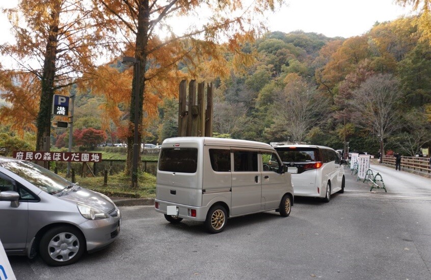 今回「ほしだ園地」の駐車場に到着したのは、3連休最終日の11月24日(月)14時半ごろ。