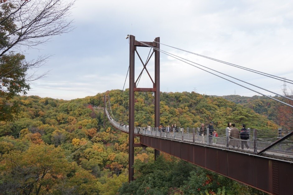 「星のブランコ」は全長280m、最大地上高50mの日本最大級の人道橋。