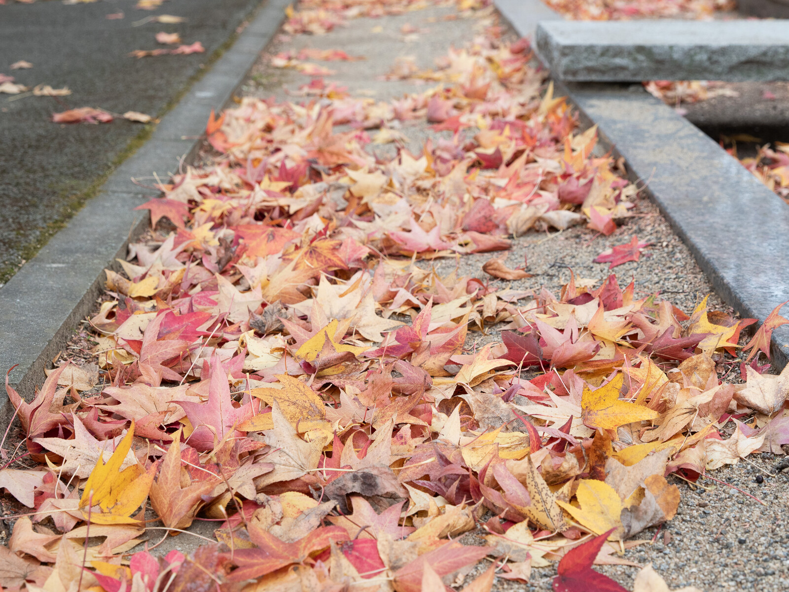風の具合でここに集まってきている葉っぱを見ていると秋が深まっているのを実感します。
