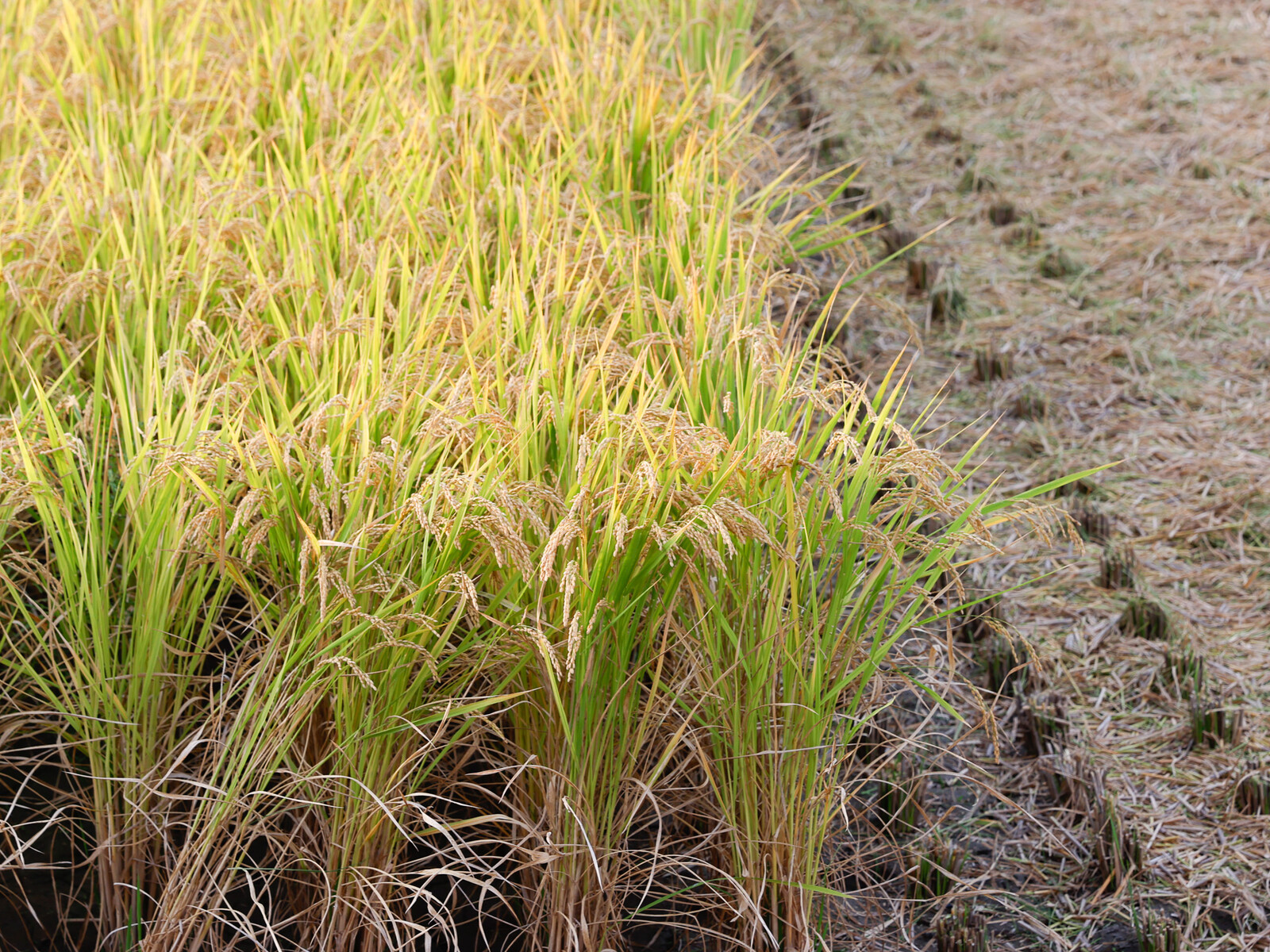重たく垂れるほどに実った稲穂の収穫は、嬉しいものです。