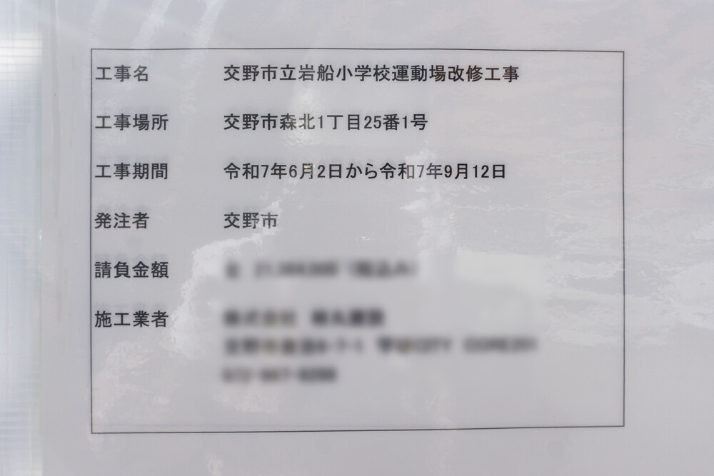 岩船小学校のグラウンドで改修工事が行われてる