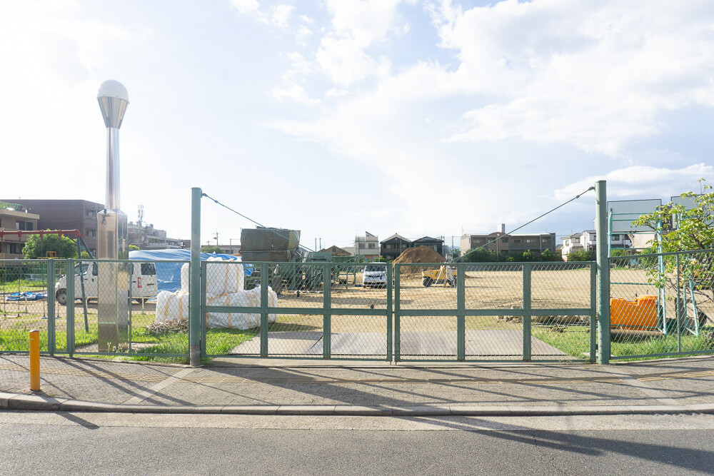 学校の前を通りかかった時に、グラウンドの中に重機があるのが見えまして。