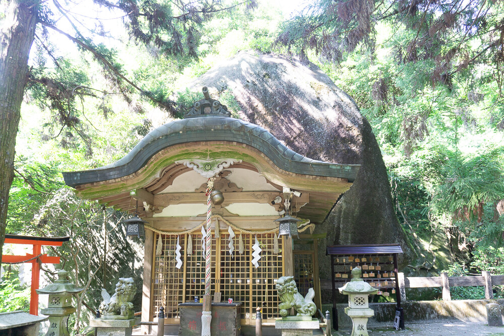 磐船神社といえば、社殿によりかかるような舟形巨岩が有名です。