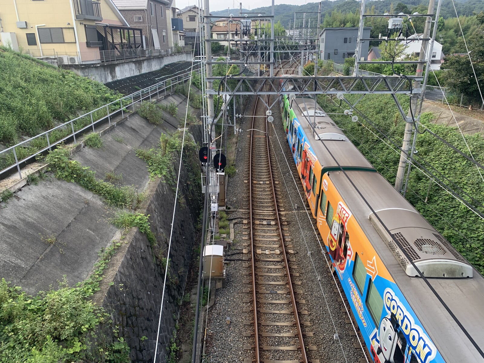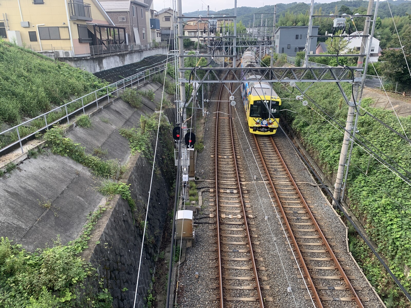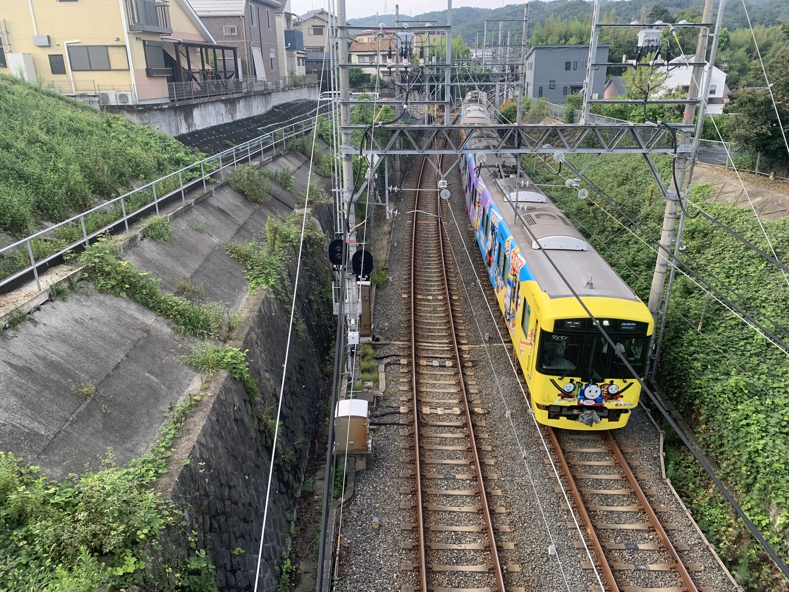 上から電車を眺めることができるのです。