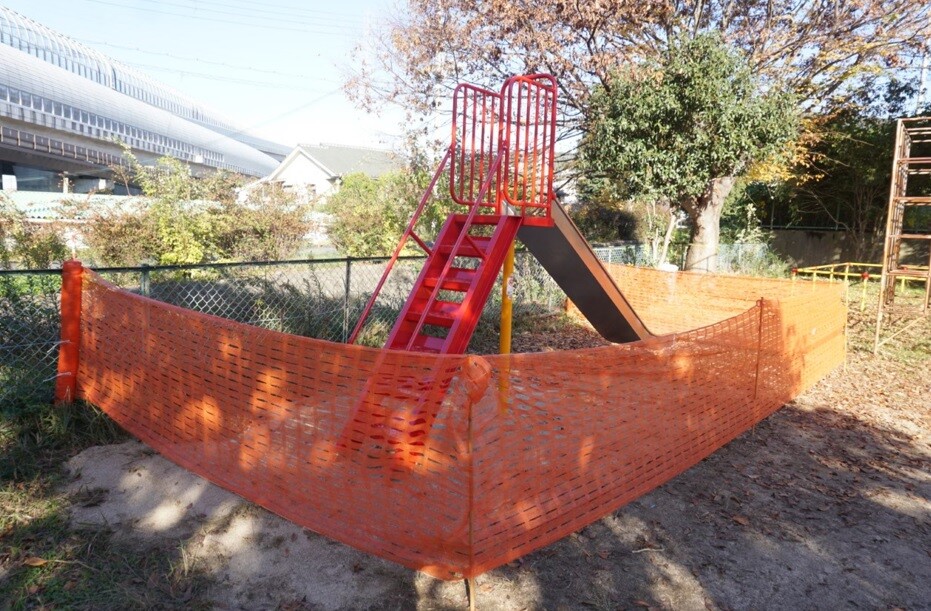 公園内の遊具が立ち入り禁止の状態になっています。