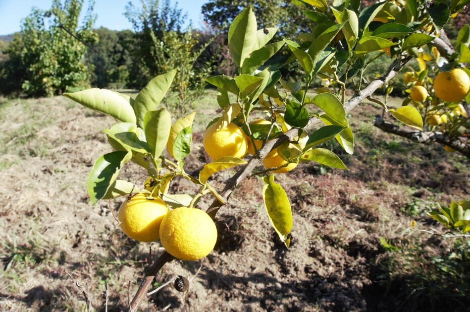 すだちにも似た黄色い実がなっています。とても美味しそう。